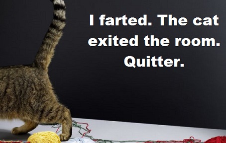 Leave a comment Posted in Feline Detractors Tagged cat personalities, exit the room, fart