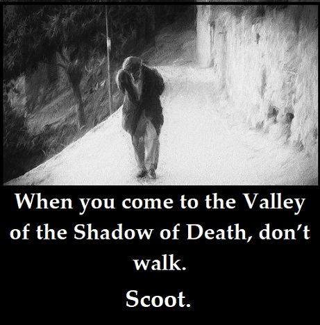Leave a comment Posted in Human Behavior, Practical Spiritiality, Social Commentary Tagged advice on the moment of death, death, don't walk, scoot, valley of the shadow of death, walk